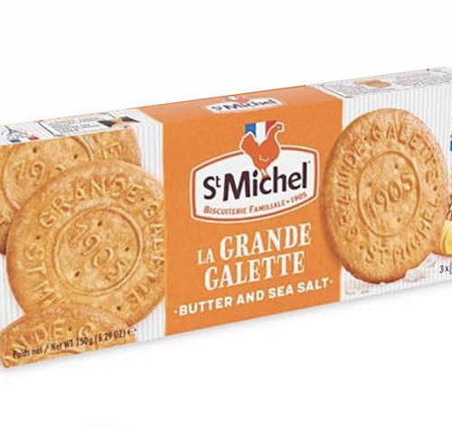 St Michel Grandes Galettes w/ Butter & Sea Salt 150g- 5.29oz 9in a box, made in France.